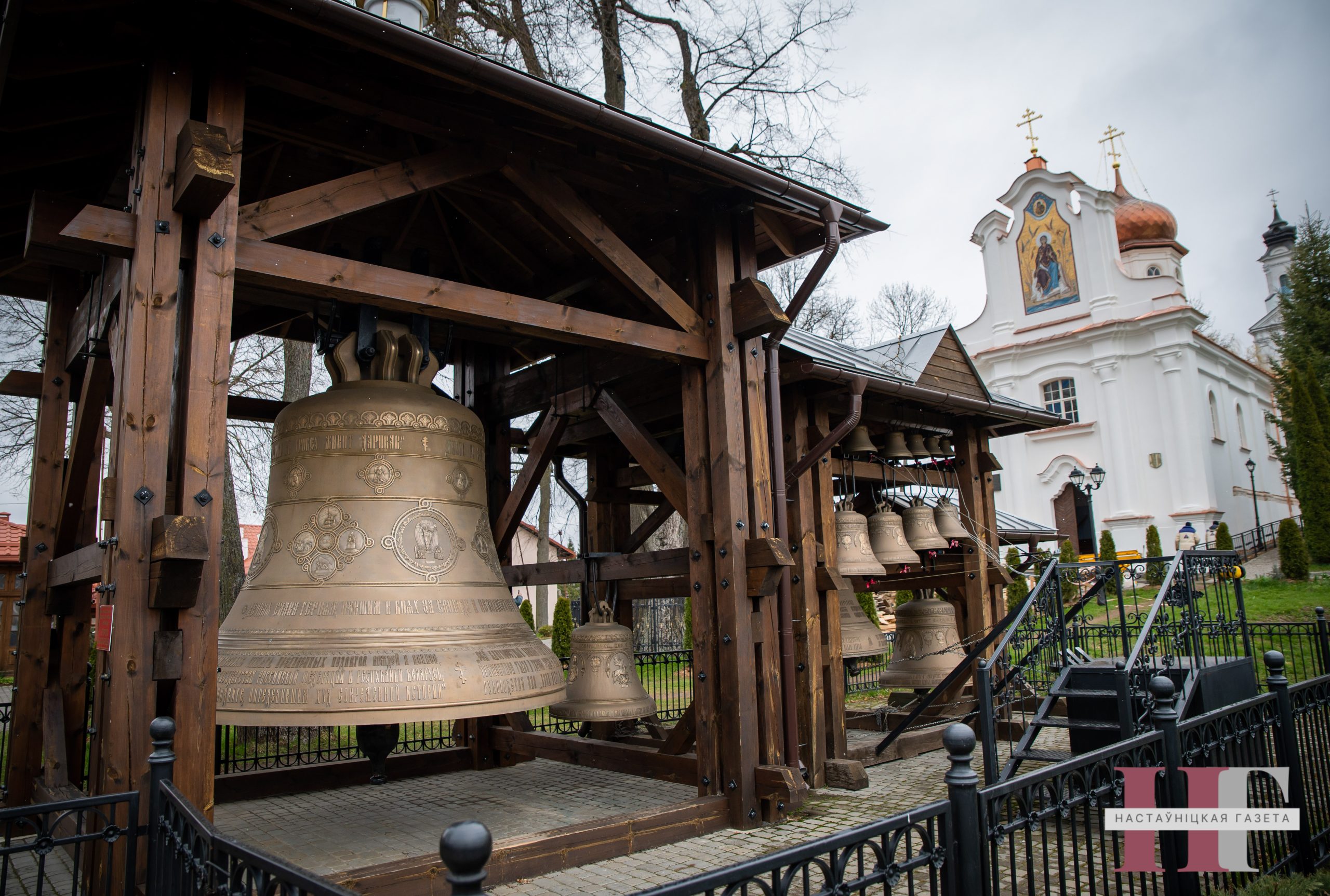 Едут в монастырь и чтобы посмотреть на 14-тонный колокол-благовест, отлитый на Воронежском колокольном заводе: он символизирует единство белорусского и русского народов. Колокол изготовлен в память о всех соотечественниках, послуживших делу победы в войне советского народа против немецко-фашистских захватчиков. Между икон на нем выгравированы барельефы двенадцати городов-героев — Москвы, Санкт-Петербурга, Новороссийска, Тулы, Смоленска, Мурманска, Волгограда, Одессы, Керчи, Севастополя, Киева, Минска и Брестской крепости-героя. А также значимых для белорусского народа мест: Хатыни, Тростенца и Кургана Славы.