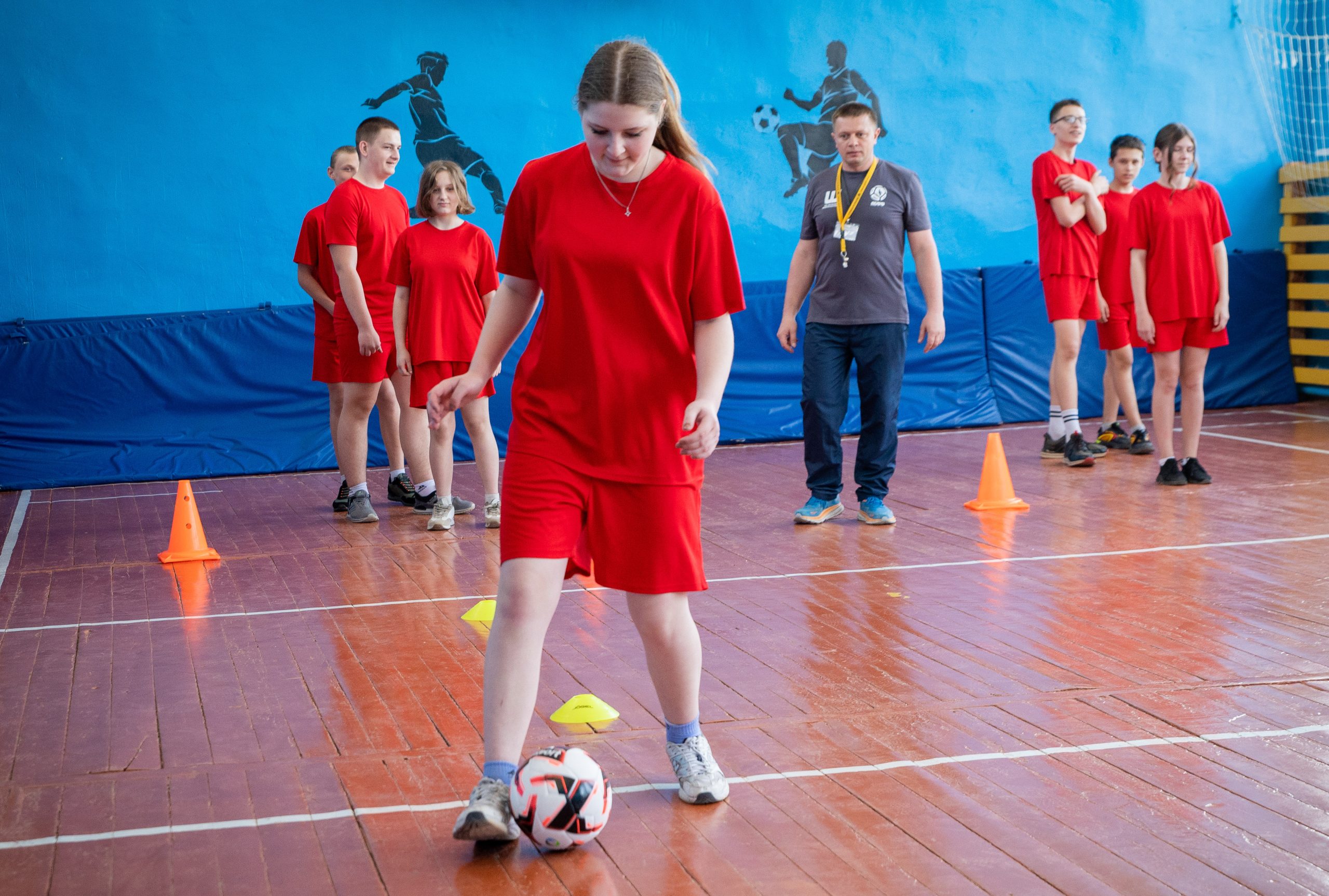 — Быстро берем спортивный инвентарь и раскладываем его для организации эстафеты, — обращается педагог к старшеклассникам.