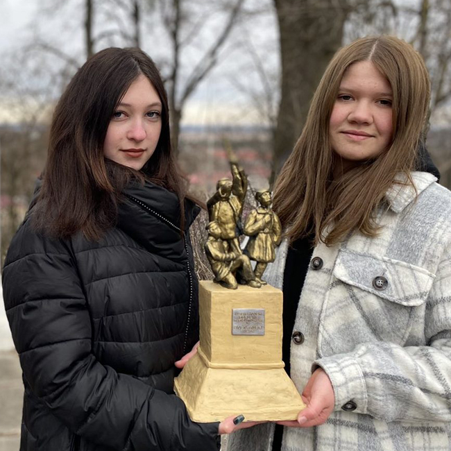 Лёс помніка не пакінуў нікога абыякавым на штогадовай навукова-практычнай канферэнцыі “Вялікія разумнікі”, што право­дзілася ў нашай школе. Слёзы стаялі ў вачах прысутных. Тэма Грамадзянскай вайны і тых, хто думаў пра нас, пра светлую і шчаслівую будучыню, стала блізкай кожнаму ў зале, дзе праходзіў адкрыты рэгіянальны фестываль дзіцячай і маладзёжнай кінавідэатворчасці, прымеркаваны да Года народнага адзінства і прысвечаны гістарычнай спадчыне нашай краіны. Гэтае мерапрыемства праходзіла пад патранатам Рэспубліканскага грамадскага аб’яднання “Беларуская асацыяцыя клубаў ЮНЕСКА”, і наша работа была адзначана дыплома ІІ ступені. Па QR-кодзе можна паглядзець ролік, прысвечаны мазырскаму помніку з паштоўкі.