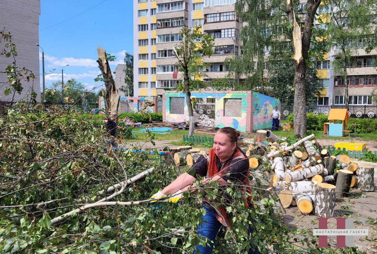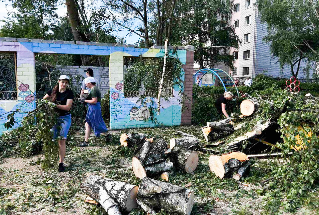 — Когда утром после ураганной ночи пришли на работу, увидели хаос. Здание выстояло, но выбило окно, местами раскрыло крышу. Участок завалило вывернутыми с корнями деревьями. Из наших прекрасных каштанов, кленов и берез уцелели единичные деревья. Навести порядок только собственными силами было бы очень тяжело. На помощь пришли неравнодушные родители воспитанников, коллеги из соседних учреждений образования, работники предприятий-шефов. Сообща возвращаем учреждение в привычный ритм деятельности, — поделилась заведующая детским садом № 100 Могилева Светлана Подгурская.