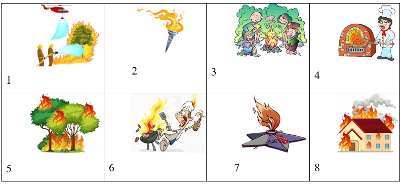 Разделите карточки на две группы: огонь-друг и огонь-враг.