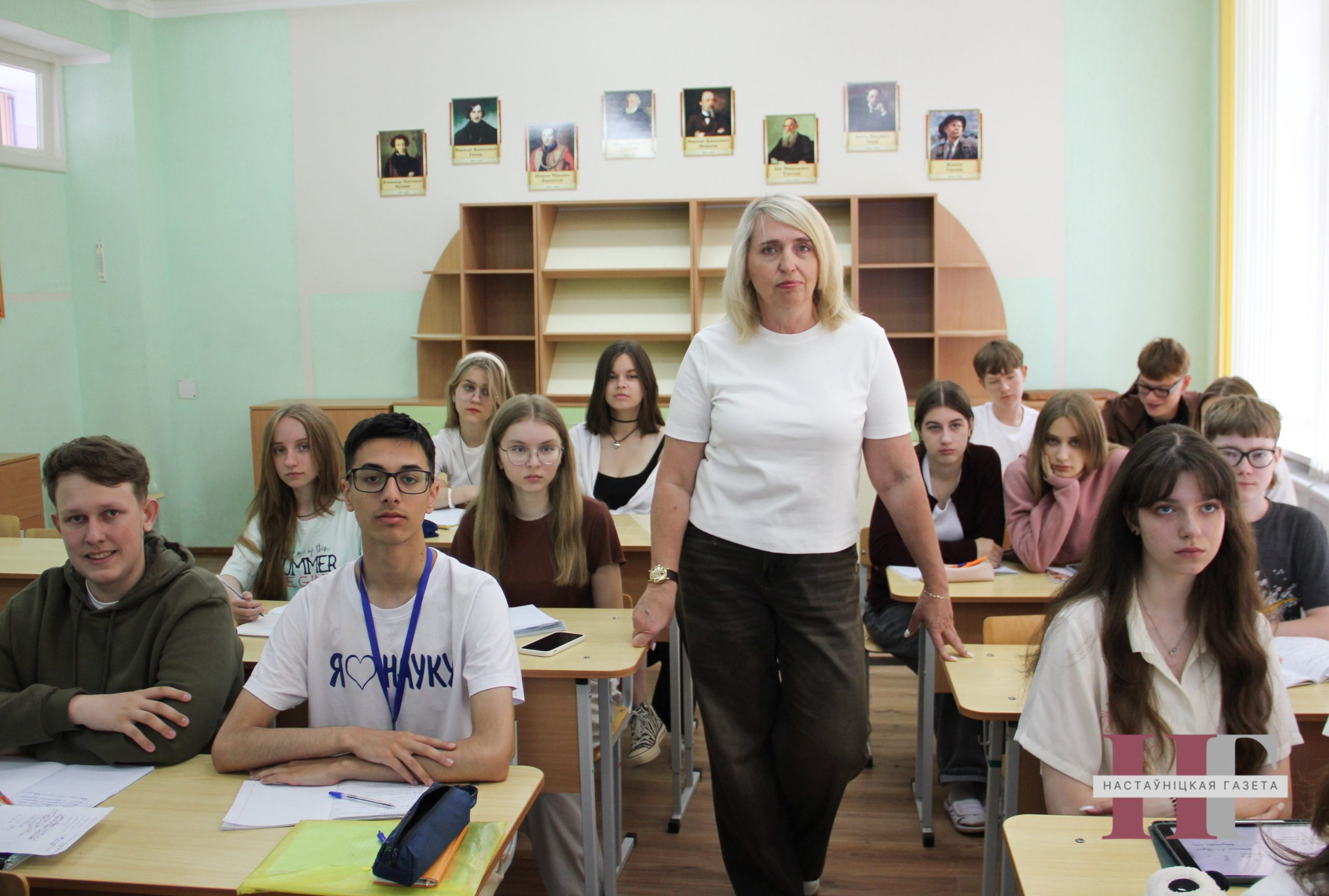 — У лагеры сабраліся дзеці, якія ўдзельнічалі ў раённым, абласным этапах рэспубліканскай алімпіяды, якія імкнуцца многа ведаць. Мне падабаецца з імі працаваць, таму што бачыш, як у іх гараць вочы. Яны шмат ведаюць і ўсё ж занатоўваюць за мной. Я працую больш з літаратурным кампанентам. Сёння ў нас дзень, прысвечаны Васілю Быкаву, 100-годдзе якога святкавалася зусім нядаўна. Таксама будзем гаварыць пра кнігі-юбіляры, пісьменнікаў-юбіляраў, напрыклад, пра Аркадзя Куляшова, чые творы пакладзены на музыку. Дзеці паабяцалі, што выканаюць песню “Алеся”. Такая вось літаратурная падрыхтоўка да алімпіяды, — расказала педагог.
