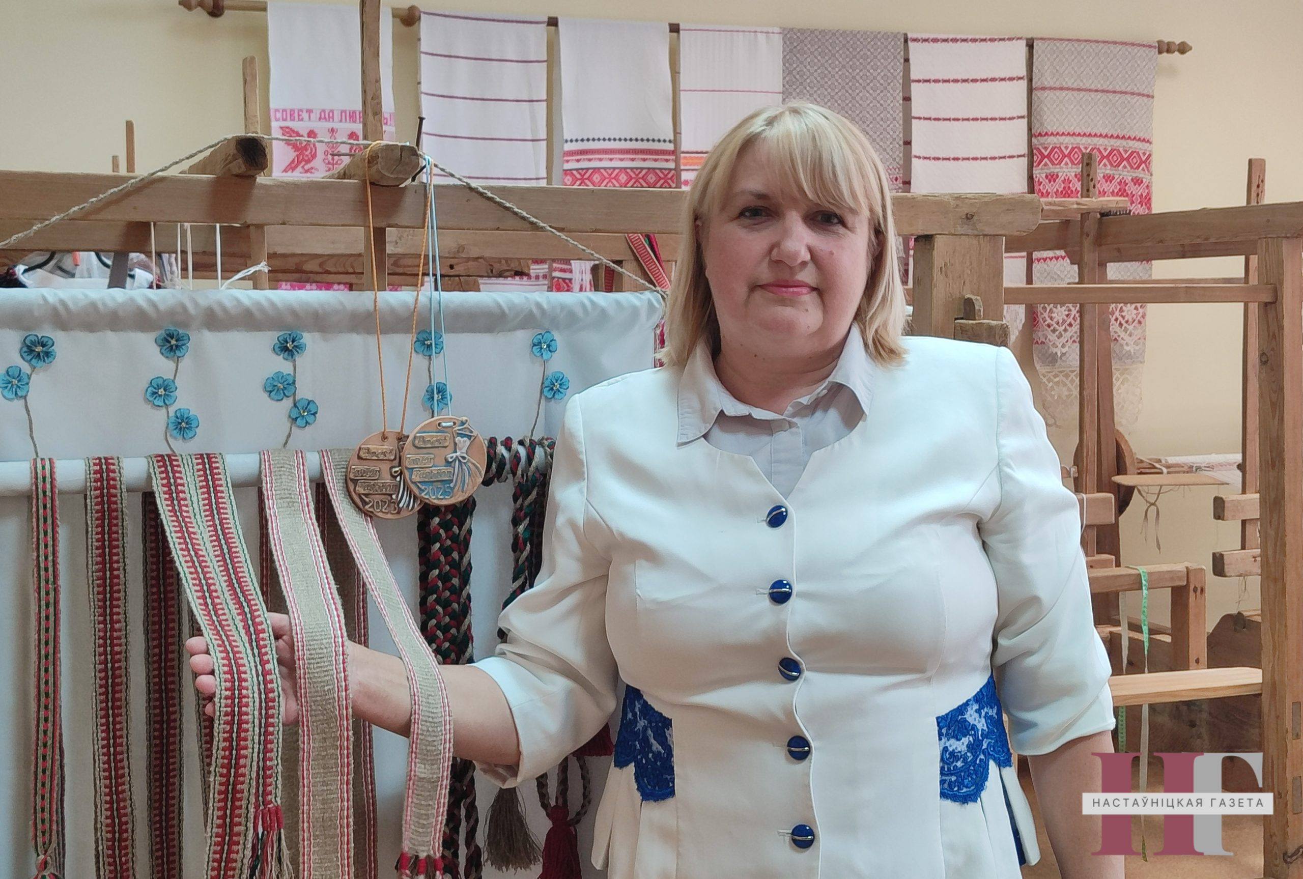Когда с семьей переехали в Белоозерск, места в школе не нашлось. А рядом с домом — Центр внешкольной работы (сейчас ЦДОДиМ). Зашла — и мне предложили вести кружок ткачества. Я растерялась. Опыта не было. Только детские воспоминания о бабушке из деревни Огородники (Березовский район), которая владела этим ремеслом. Но отступать не стала. Поставила станок в доме бабушки, нашла мастериц, которые еще помнили, как ткать. Так и работала, и училась одновременно. Днем — занятия с детьми, а во вторую смену мчалась в деревню. По книжкам этому не научишься, только наглядный пример и практика. Свой первый рушник я соткала к новому, 2007 году, потратив три месяца, — рассказывает педагог.
