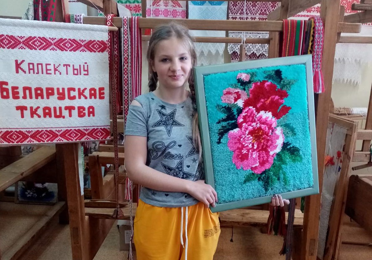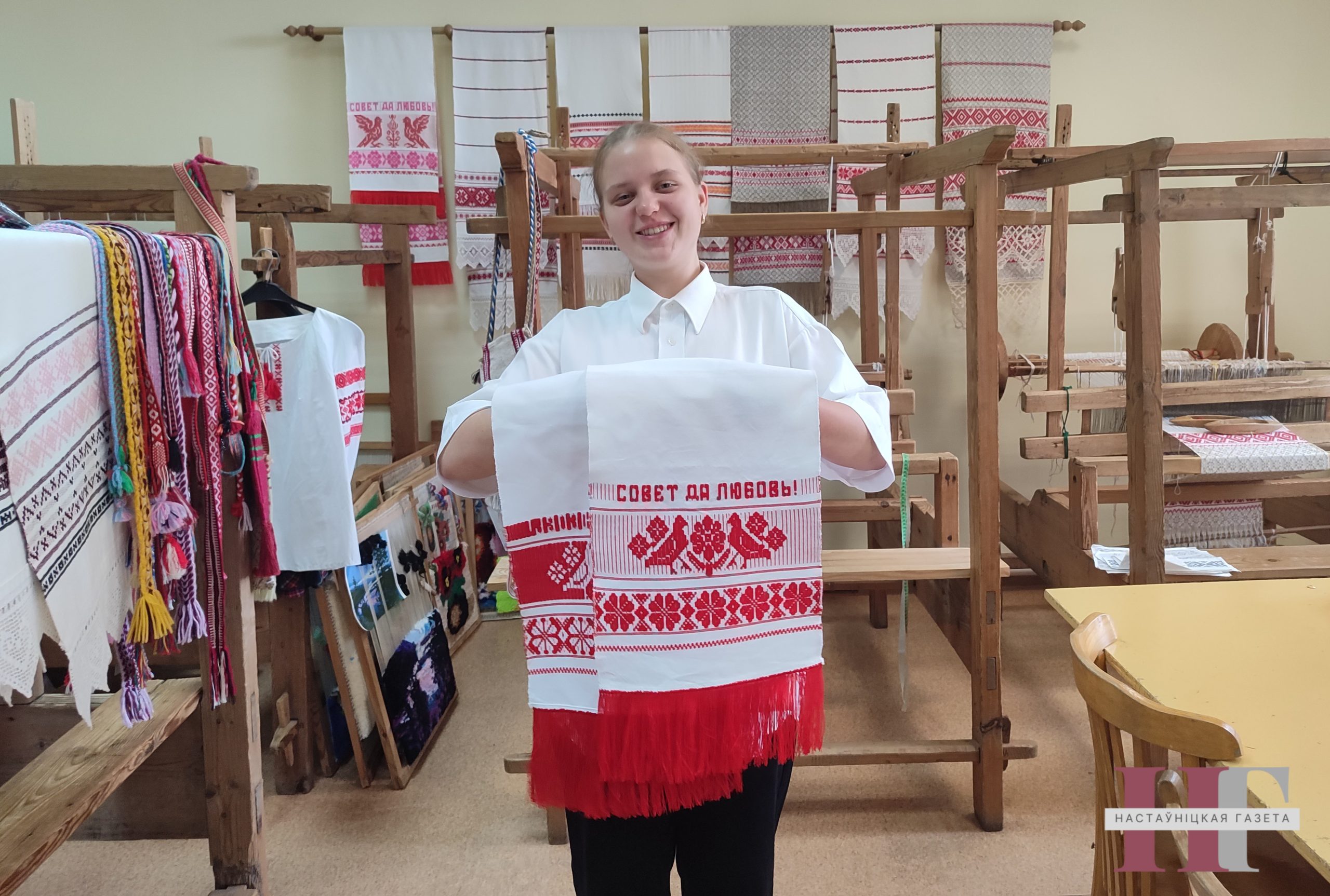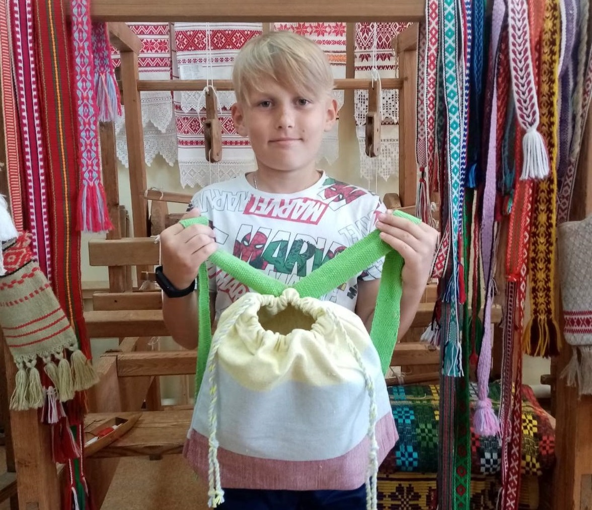 — Среди них выделяется Илья Матяш, родственник нашей знаменитой поэтессы Нины Матяш. Он ходит с четвертого класса, сейчас перешел в седьмой. Вначале изготавливал пояса, а сейчас трудится только на станке. Соткал два рушника для конкурса, для себя сделал рушник на четырех ремизках, а это сложно, поверьте, — отмечает Т. Пунько.
