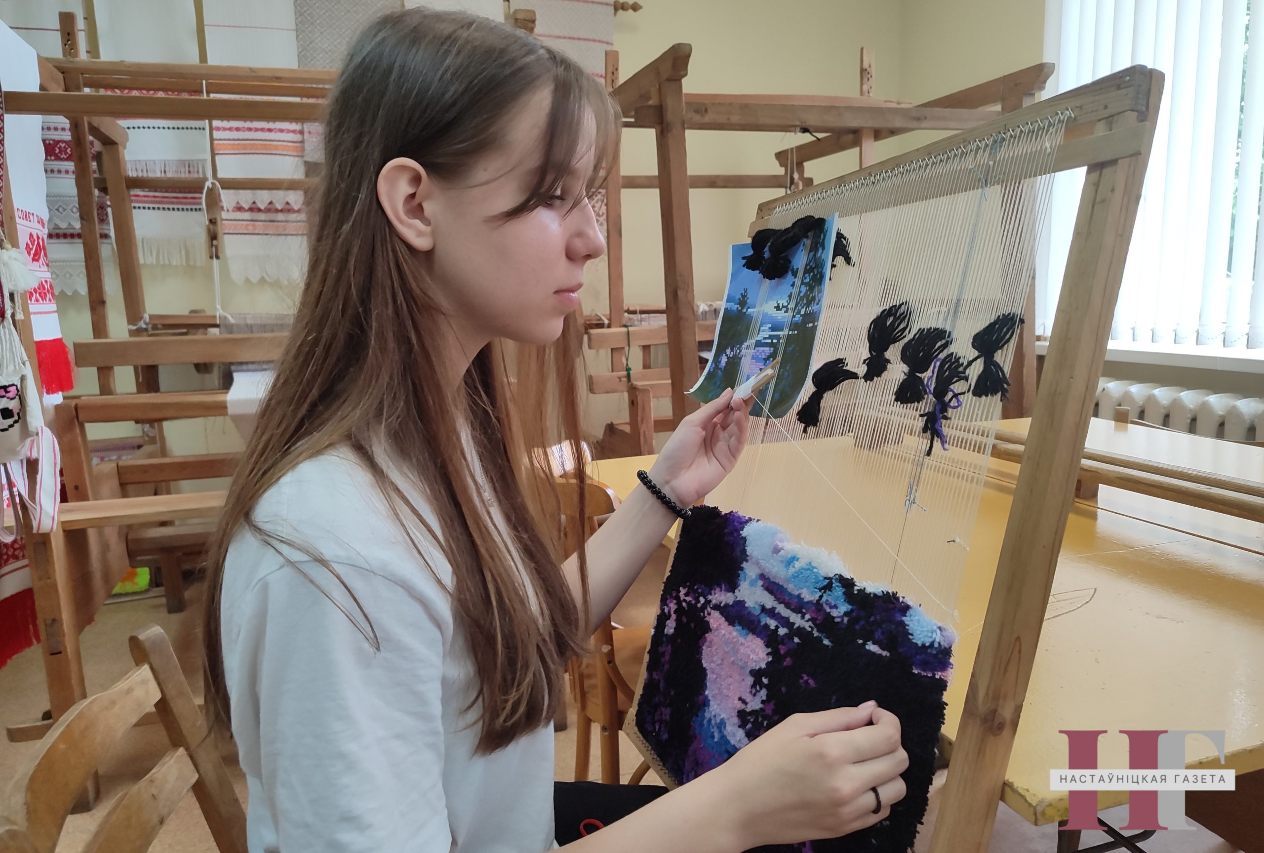 — Два станка у нас для изготовления выставочных работ, два — для изделий, которые воспитанники делают для себя. На одном ткутся сумки-шоперы и рюкзаки из более толстых нитей, на другом — изящные рушники или салфетки. Почему очередь? Процесс ведь небыстрый. Например, недавно ученица Ульяна Пукало, перешедшая в 10-й класс, соткала себе… свадебный рушник! На это ушло несколько месяцев кропотливого труда. На один шопер в среднем требуется две-три недели. Потом приступает следующий человек, — уточняет педагог.