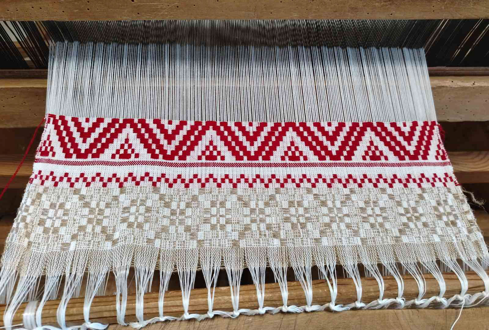 Для создания узоров на полотне используется браный способ: специальной дощечкой (бральницей) создают дополнительный зев для цветной нити узора. Его схема напоминает схему для вышивки крестиком. Только каждая клеточка — это две, четыре или шесть нитей основы. Так, вооружившись большой иглой и считая нити, вручную создаются национальный орнамент или, к примеру, изображения котиков.