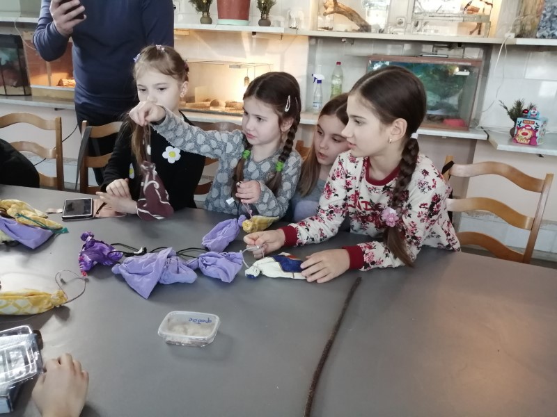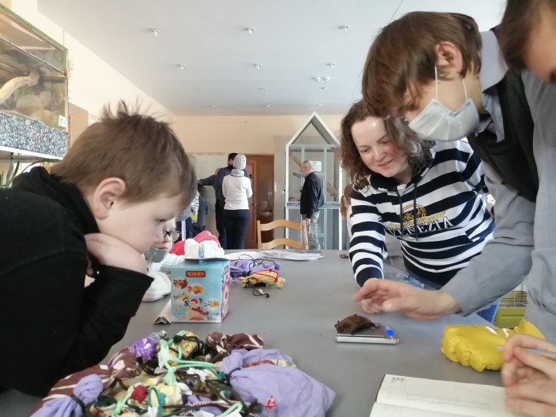 “У асноўным мае памочнікі — навучэнцы старшых класаў і студэнты. Малых дзяцей мы не дапускаем да догляду кажаноў, — гаворыць Аляксей, але, зірнуўшы на сваю 11-гадовую дачку, з усмешкай дадаў, — за рэдкім выключэннем. Яна з маленства жыве сярод кажаноў і ніколі не ўпускае магчымасці пакарміць іх. Іх у нас дома і сёння шмат — у экацэнтр прыносяць звяркоў людзі па суботах, а ў будныя дні — нам дадому”.
