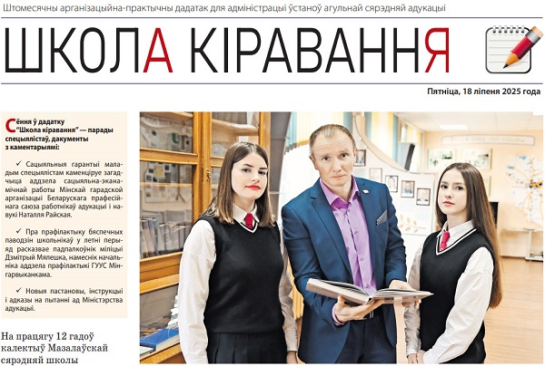Штомесячны арганізацыйна-практычны дадатак да «Настаўніцкай газеты» «Школа кіравання» выйдзе 18 ліпеня. Ён будзе карысны для адміністрацыі ўстаноў агульнай сярэдняй адукацыі.
