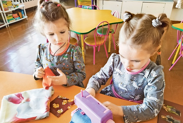 Арганізоўваючы гульні, педагогі не толькі знаёмяць дашкольнікаў з уласцівасцямі пластмасы і тканіны, але і замацоўваюць у іх элементарныя ўяўленні пра форму, велічыню і колер, развіваюць дробную маторыку. Дзеці любяць дыдактычныя гульні “Чым падобны гэтыя прадметы”, “Дакраніся да…”, “Здагадайся”, “Знайдзі латку” і “Тканінныя пазлы”, гульню-эстафету “Сарціроўшчыкі” і сюжэтна-ролевыя гульні “Атэлье” і “Паказ мод”.