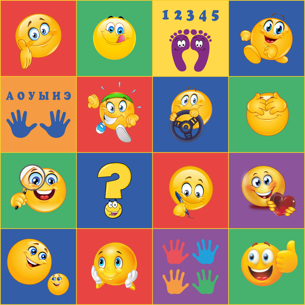 Што ўяўляе сабой логадыванок? Гэта палатно памерам 120 см на 120 см, якое складаецца з 16 рознакаляровых квадратаў. На 12 квадратах нанесены выявы “смайлікаў”, якія перадаюць розныя эмоцыі або выконваюць пэўныя дзеянні (прывітанне, хадзьба, бег, язда; заплюшчаныя вочы; пошук (позірк у лупу); дарыць сэрцайка; вялікі і маленькі смайлікі і інш.). На астатніх размешчаны лічбы ад 1 да 5 і намаляваны дзве ступні; галосныя гукі (а, о, у, ы, і, э) і малюнак двух далоняў; знак пытання; чатыры рознакаляровыя далонькі (чырвонага, сіняга, аранжавага і зялёнага колераў).