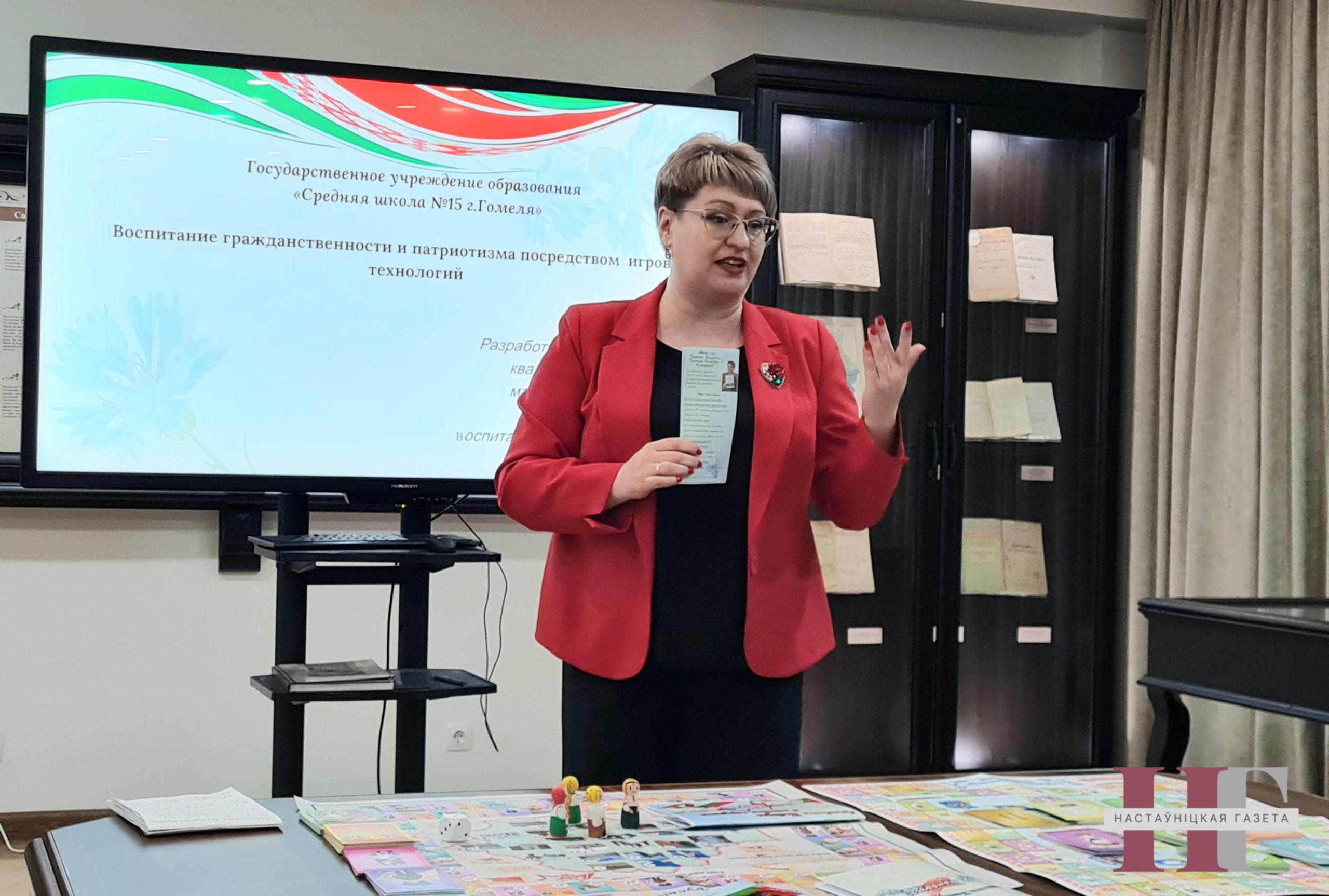 Воспитание гражданственности и патриотизма средствами игровых технологий — такой была тема выступления воспитателей средней школы № 15 Гомеля Анастасии Овсянковой и Светланы Ракицкой, которые представили игру-викторину «Знатоки Беларуси».