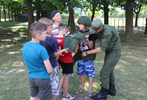 — Арганізацыя ваенна-патрыятычнага лагера мае вялікае значэнне, — падкрэслівае намеснік камандзіра 115-га зенітнага ракетнага палка па ідэалагічнай рабоце падпалкоўнік Аляксандр Сіраеў. — Такая работа накіравана на выхаванне патрыятызму ў падлеткаў. Гэта яркі прыклад таго, што арміі баяцца не трэба. У першую чаргу наша задача — паказаць дзецям, што тут ёсць што ўбачыць і ёсць чаму павучыцца. Звычайна ярка і запамінальна праходзіць адкрыццё змены. Уражвае выхаванцаў найперш выстава ваеннай тэхнікі, узораў стралковай зброі, экіпіроўкі вайскоўцаў, выступленне інструктара з вышуковым сабакам па затрыманні парушальнікаў дзяржаўнай граніцы. Разам з вайскоўцамі юнакі спасцігаюць азы агнявой і страявой падрыхтоўкі, вучацца выкарыстоўваць сродкі індывідуальнай засцярогі. Гэта згуртоўвае маладых людзей, яны знаходзяць новых сяброў, узаемадзейнічаюць. Упэўніваюцца ў тым, што армія — гэта не пустая трата часу.