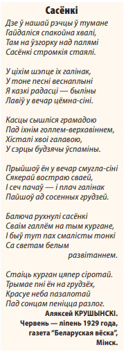 — Дзядуля пісаў выдатныя вершы. У 1929 годзе ён напісаў верш “Сасёнкі”, які быў апуб­лікаваны ў газеце “Беларуская вёска”. Дзядуля памятаў яго да апошніх момантаў свайго жыцця і расказваў на памяць. Да таго ж Аляксей Крушынскі быў вельмі музыкальным, іграў на некалькіх музычных інструментах, у тым ліку на фартэпіяна. Ужо праз гады я перапрацаваў вальс, якому мяне навучыў дзядуля, ва ўласную музычную кампазіцыю для фартэпіяна “Душа”, — расказ­вае Аляксей Скрыпнік.