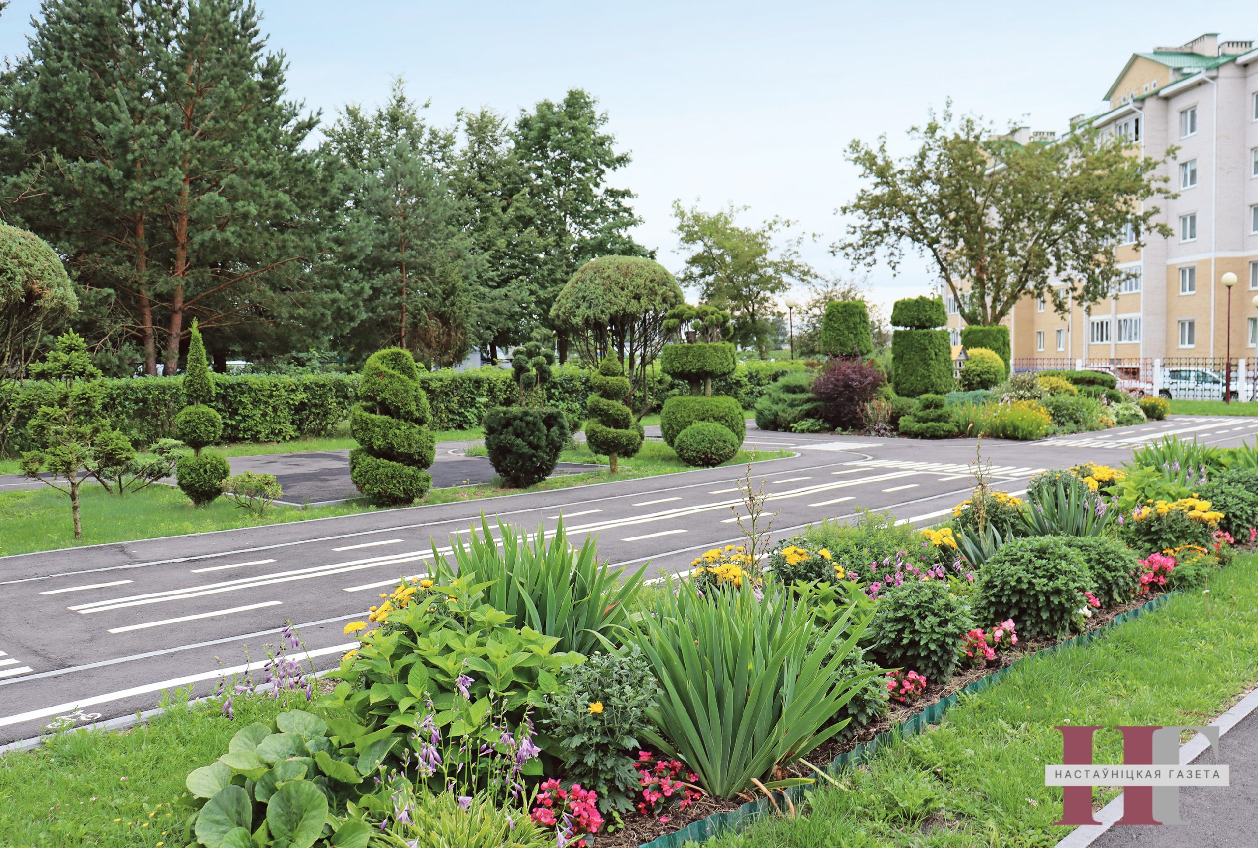 — Ідэйным натхняльнікам стварэння ўсёй гэтай прыгажосці з’яўляецца наш бібліятэкар Анжэла Тадэвушаўна Івановіч. Разам са сваім мужам Алегам Валянцінавічам, рабочым па комплексным рамонце, яна рэалізавала шмат праектаў, сярод якіх кампазіцыя “Сэрца гімназіі”, лілейнік, штучная сажалка з фантанам і інш. Для таго каб гімназічная тэрыторыя ўвесь год патанала ў кветках і стварала пазітыўны настрой, расліны падбіраюцца ў адпаведнасці з часам цвіцення і яруснасці. Да работы актыўна далучаюцца вучні і педагогі. Дарэчы, у мінулым годзе гімназія стала пераможцай раённага конкурсу па добраўпарадкаванні тэрыторыі, — адзначае дырэктар гімназіі Таісія Шыбун.