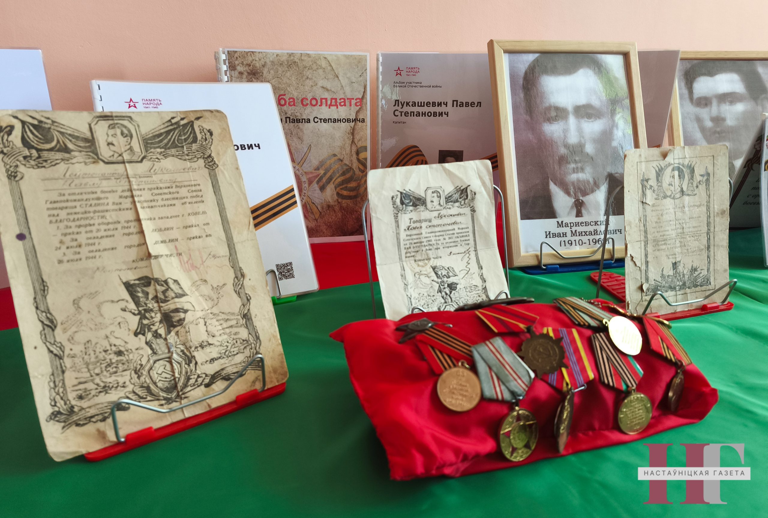 — Вось гімнасцёрка, ёй ужо больш за 80 гадоў, і яна належыць майму бацьку, — з трапятаннем у голасе прамаўляе Вольга Паўлаўна. — Таксама захаваліся падзякі Сталіна, ордэны і медалі.