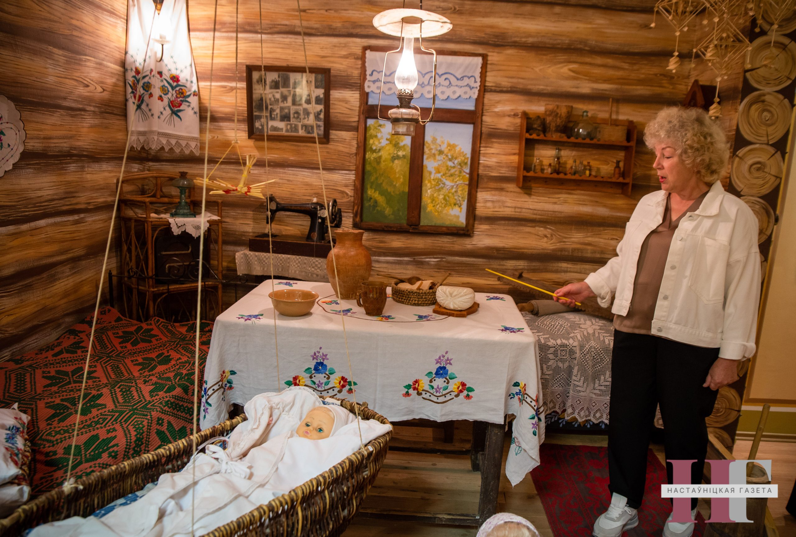 Праводзячы экскурсію, Вікторыя Раманаўна звярнула ўвагу на найбольш каштоўныя музейныя прадметы. Сярод іх крэсла драўлянае разное са скураным сядзеннем пачатку ХIХ ст., дакумент “Копия крепости, записанной в крепостную за 1865 год”, самавар братоў Туляковых, таз медны мануфактуры Кальчугіна, фотаздымак “Беларускія настаўніцкія курсы ў Вільні” і інш.