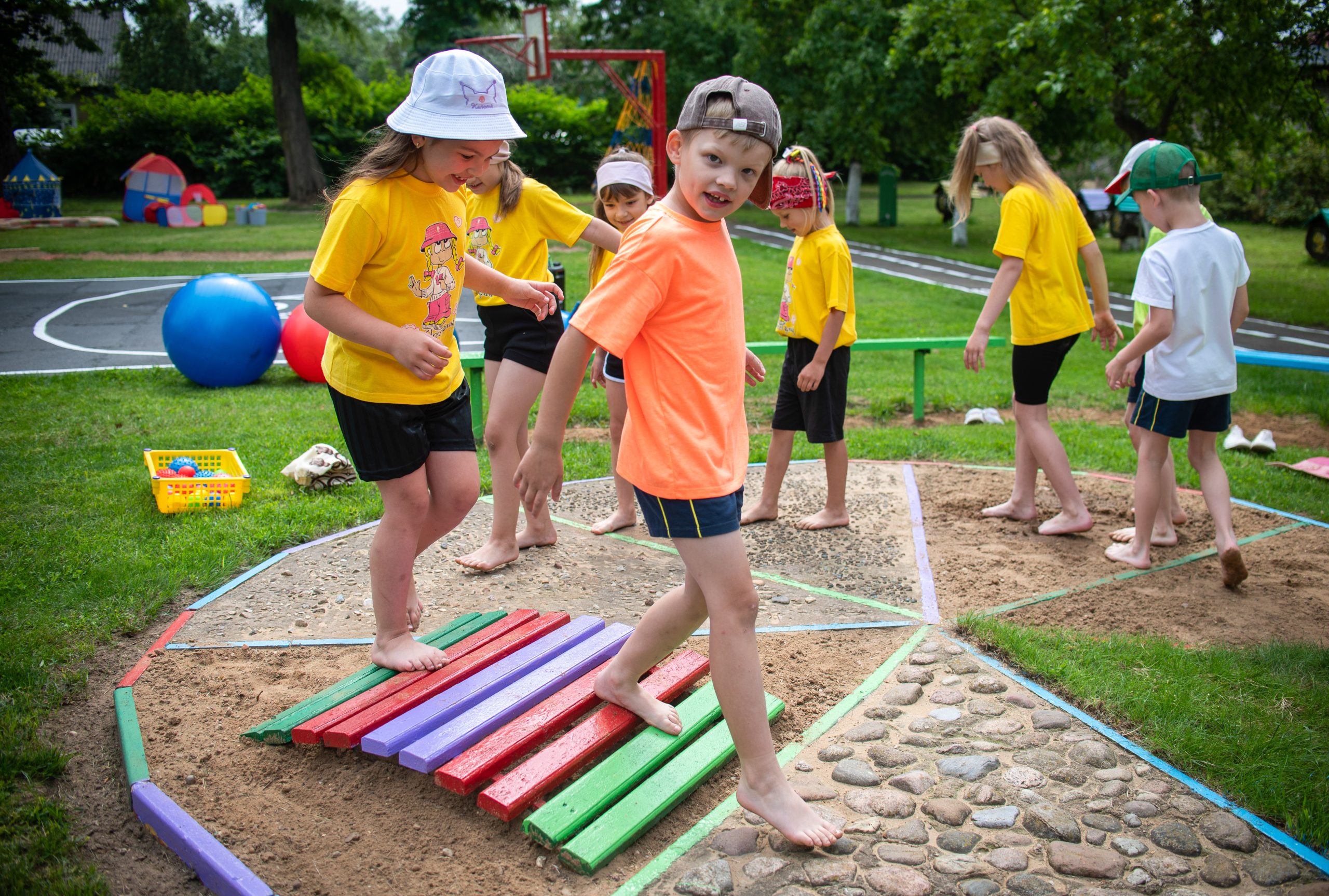 — А еще у нас здесь расположился бум разновысокий, — добавляет педагог. — Он состоит из 3 брусьев и используется как гимнастическое бревно для тренировки вестибулярного аппарата наших воспитанников и, безусловно, развития ловкости. Для этого в том числе продуман комплекс упражнений «Ходьба по доске с ребристой поверхностью». Он обеспечивает массаж стоп и спины, профилактику плоскостопия, укрепление вестибулярного аппарата, мышц пресса и спины, развитие координации движений, силы и ловкости.
