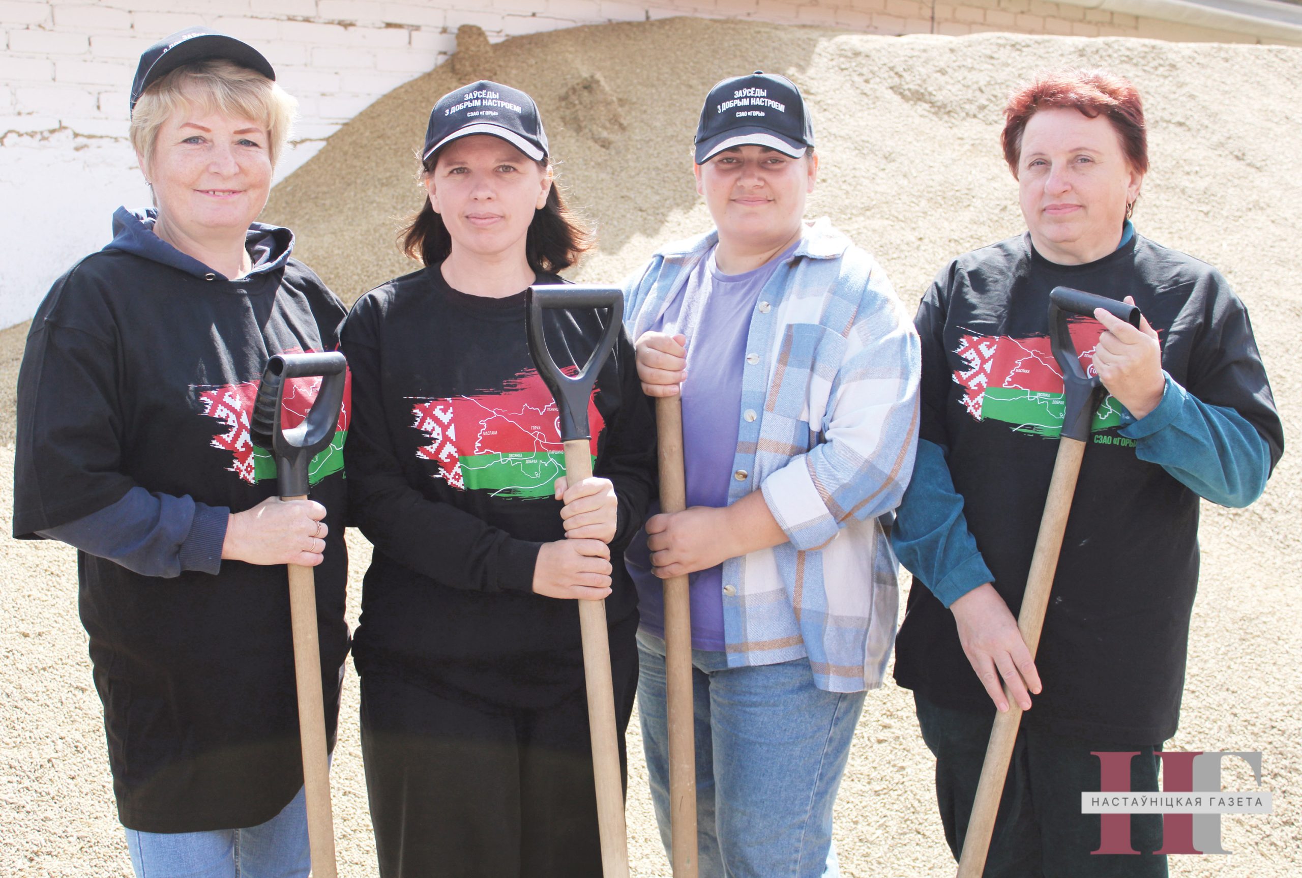 Адзінай камандай пад кіраўніцтвам Алесі Уладзіміраўны на збожжатаку плённа працуюць настаўніца рускай мовы і літаратуры Валянціна Шастакова, настаўніца матэматыкі Галіна Цуп, настаўнік фізкультуры Мікалай Шакуноў, настаўніца пачатковых класаў Алена Петрачэнка, намеснік дырэктара Наталля Сазонава, выхавальнікі Наталля Бандарэнка, Раіса Балышкіна, Валянціна Глебка і дзевяць тэхнічных работнікаў. Калектыў распрацаваў спецыяльны графік, штодня на вахту заступаюць па тры чалавекі.