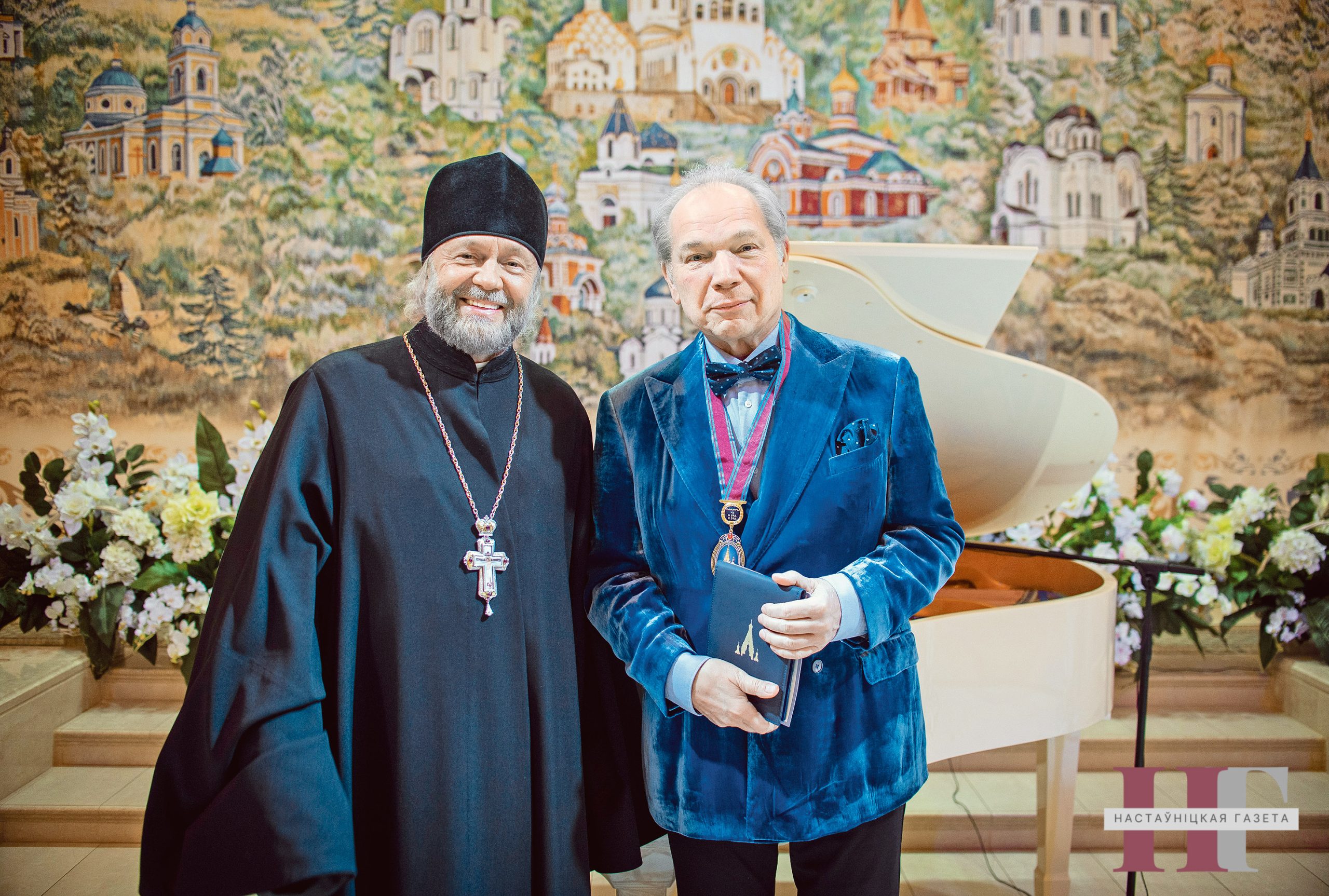 Протоиерей Федор Повный вручил орден храма-памятника председателю Международного благотворительного фонда, пианисту, народному артисту России Юрию Розуму и поблагодарил всех, кто помогает раскрыться талантам особенных детей.