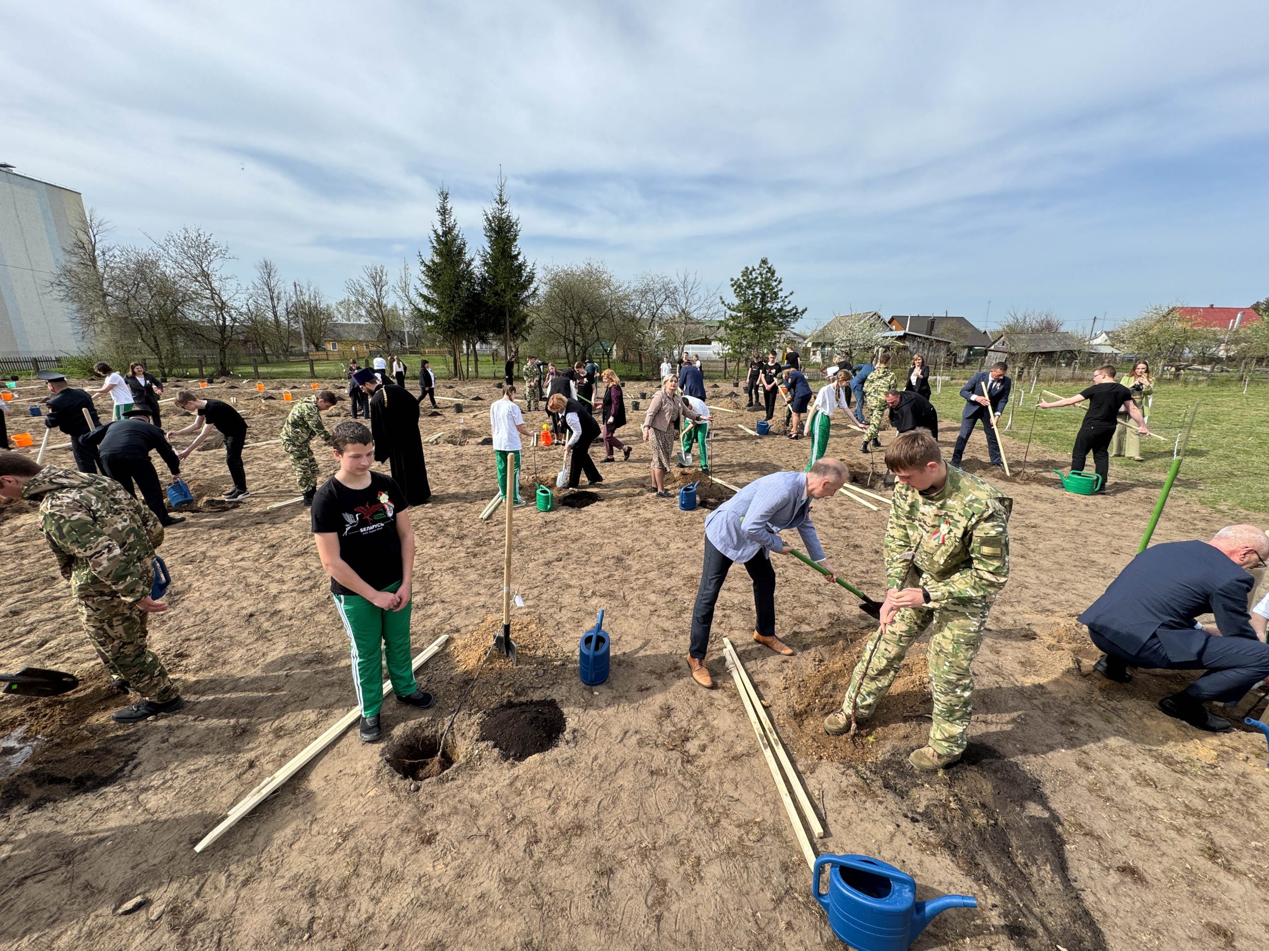 Символично напротив мурала на школьной территории высадили сад Победы. 80 яблонь с говорящими названия сортов — «Победа» и «Слава победителю» — будут расти, напоминая каждому поколению учеников, как дорог мир, какой ценой он был завоеван.