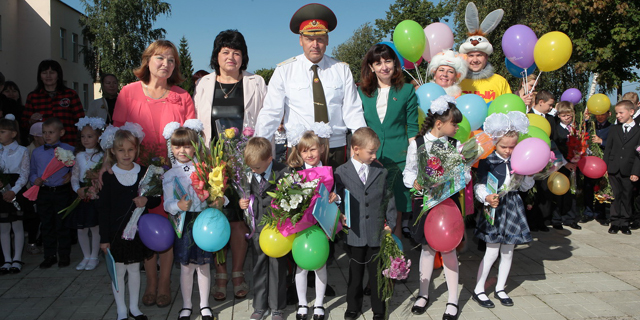 Самым волнительным и особенно торжественным оказался День знаний в Бычихинской средней школе Витебской области — участие в торжественном мероприятии принял глава МЧС. Владимир Ващенко поздравил ребят и педагогов с началом учебного года и вручил памятные подарки для школы.