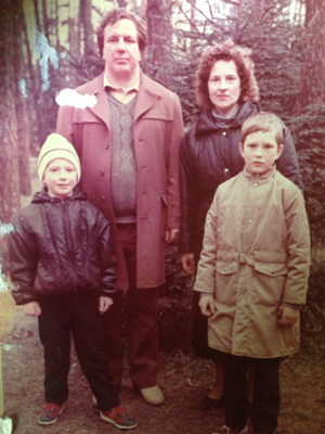 — Мой бацька Уладзімір Якаўлевіч быў старшынёй (а потым намеснікам старшыні) калгаса. Амаль увесь час знаходзіўся ў камандзіроўках, і я яго амаль не бачыў. Маці Валянціна Паўлаўна працавала на пошце. Акрамя таго, у нас была велізарная гаспадарка: дзве каровы, шэсць парсюкоў, куры і качкі. Выхаванне было больш гаспадарчым: я і мой старэйшы брат Руслан дапамагалі бацькам па гаспадарцы як маглі.