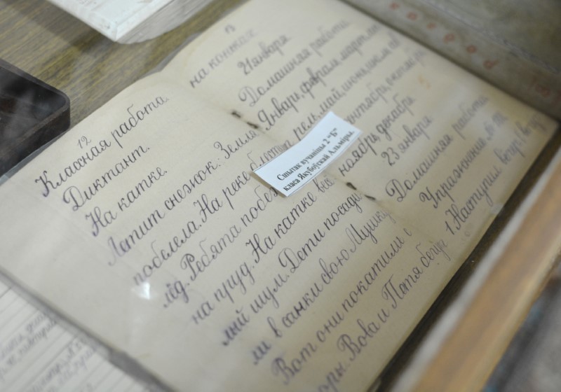 Сярод вялікай колькасці экспанатаў складана вылучыць найбольш каштоўны, бо кожны па-свойму ўнікальны. Але ўсё ж ёсць прадмет, які прыцягвае ўвагу кожнага наведвальніка — гэта старонкі з сшытка вучаніцы 2 “Б” класа Альміры Якубоўскай. Паглядзіце на фотаздымак. Гэта ж не проста почырк — гэта сапраўдны твор мастацтва, эталон чыстапісання. 47 стэндаў расказваюць пра развіццё адукацыі на Ашмяншчыне, пра школьнае жыццё, дзейнасць маладзёжных арганізацый, пра ўзорныя калектывы, настаўнікаў, выпускнікоў, спартыўнае жыццё школы, пра перыяд Вялікай Айчыннай вайны. Сотні імёнаў, сотні лёсаў, і пра кожны Рамуальда Іосіфаўна можа расказваць гадзінамі.
