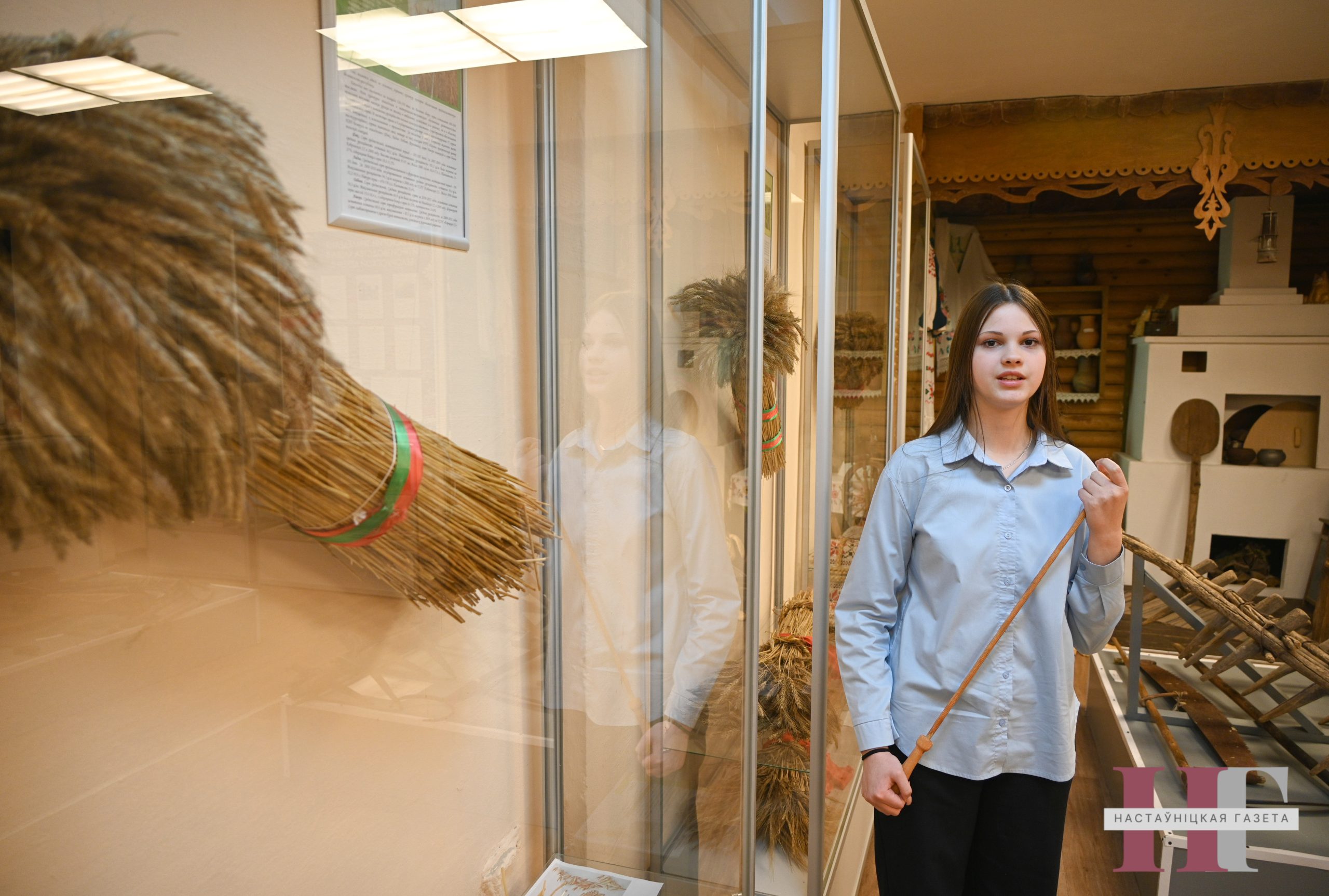 – У 2020 годзе наша школа ўдзельнічала ў конкурсе «Рэгіянальныя ініцыятывы для развіцця мікрарэгіёнаў», на які мы прадаставілі праект стварэння цэнтра па хлебапячэнні «Выпякайка». Дзякуючы выйгранаму гранту, набылі неабходнае абсталяванне, а таксама рэканструявалі музей, зрабілі яго экспазіцыю сучаснай, паколькі ранейшая не абнаўлялася з 1990 года – з часу адкрыцця музея, – расказвае яго загачыца намеснік дырэктара па выхаваўчай рабоце Наталля Віктараўна Яўменчыкава. – Сёння ў фондах захоўваецца больш за 230 прадметаў. Сярод іх каменныя жорны, дзежкі, у якіх гаспадыні замешвалі цеста, сярпы, цэп, саха, веялка, ёсць нават сноп калосся.