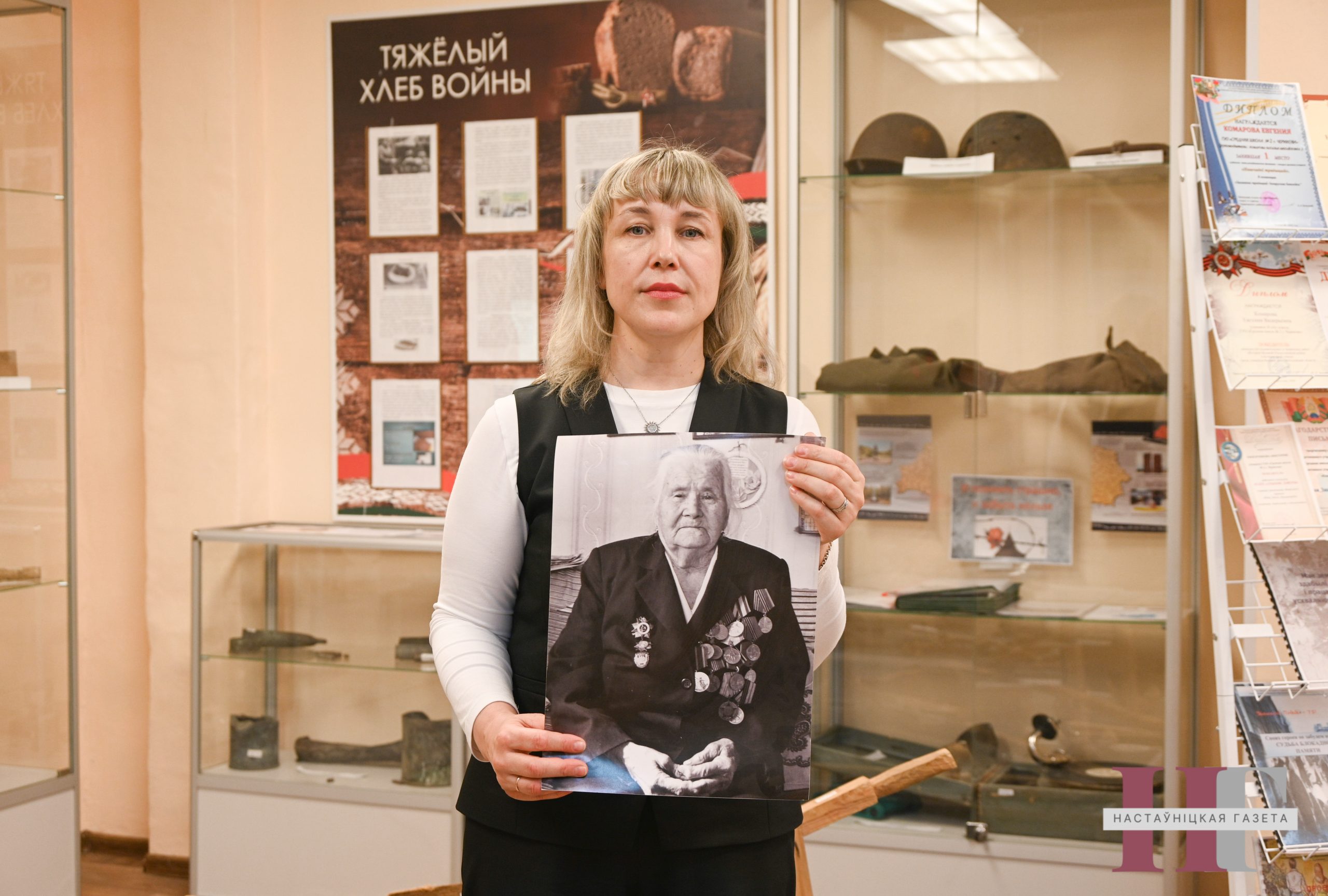 – А гэта фотапартрэт нашай зямлячкі Валянціны Рыгораўны Жыбуль. У часы вайны яна пякла хлеб партызанам, пастаянна рызыкуючы жыццём. Калі яна была яшчэ жывая, мы з вучнямі часта наведваліся да яе ў госці, віншавалі са святамі, дапамагалі па гаспадарцы. Таксама запісалі ад яе рэцэпт партызанскага хлеба, таго самага, які яна пякла народным мсціўцам. І канечне, жанчына падзялілася сакрэтамі духмяных караваяў, якія выпякалі калісьці нашы прабабулі, – паведаміла Наталля Яўменчыкава.