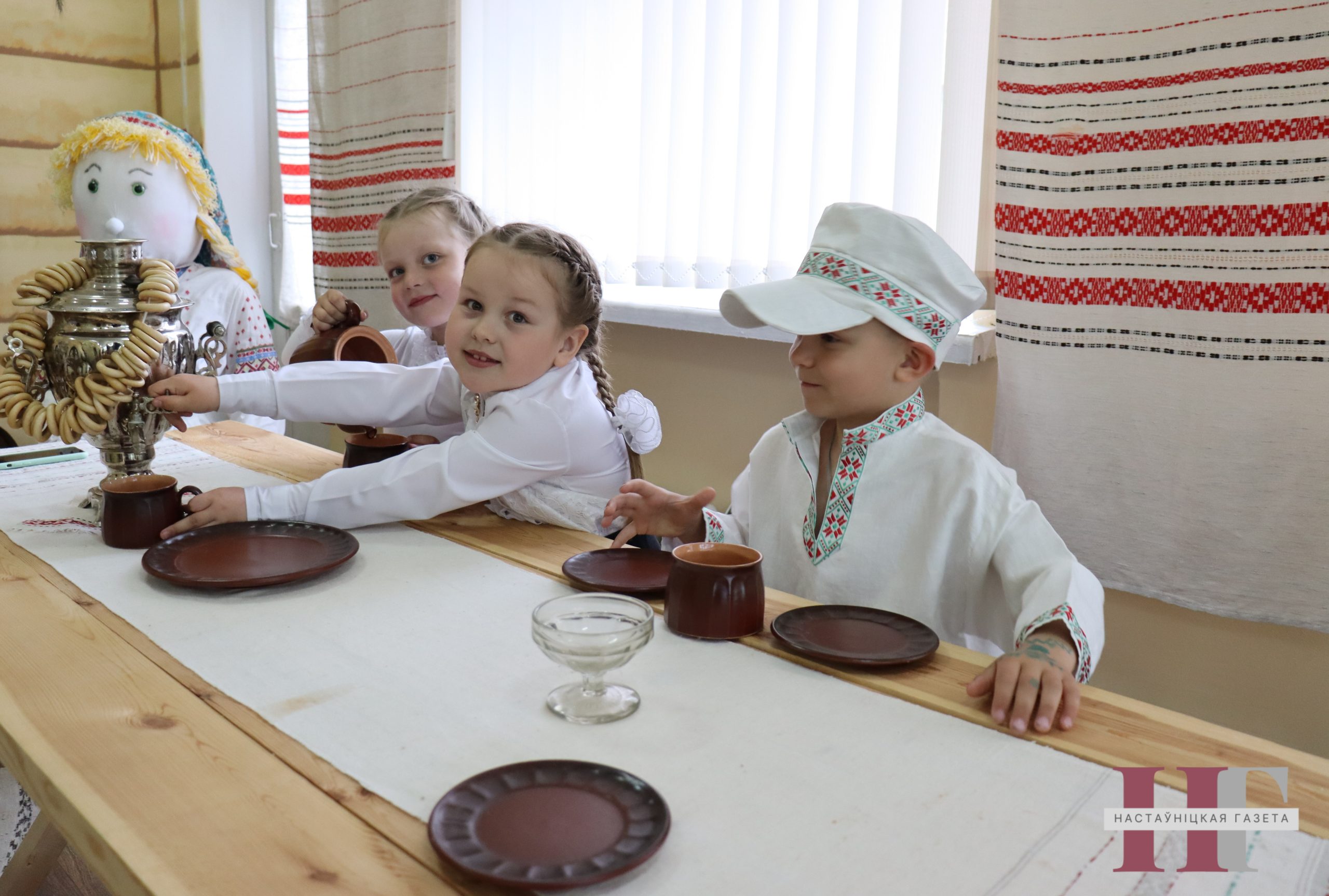 — Два гады назад мы вырашылі стварыць міні-музей «Беларуская хатка», — працягнула намесніца загадчыцы па асноўнай дзейнасці Святлана Мядзелец. — Беларусы казалі: «Свая хатка як родная матка». І таму ў стварэнне экспазіцыі мы ўклалі ўсю душу, каб кожны госць адчуў дух, цяпло дома жывога і сапраўднага. Экспанаты збіралі разам дзеці, бацькі і педагогі. Гэта старадаўнія прадметы: гаршкі для гатавання ежы, калаўрот, прас, сельскагаспадарчыя прылады.