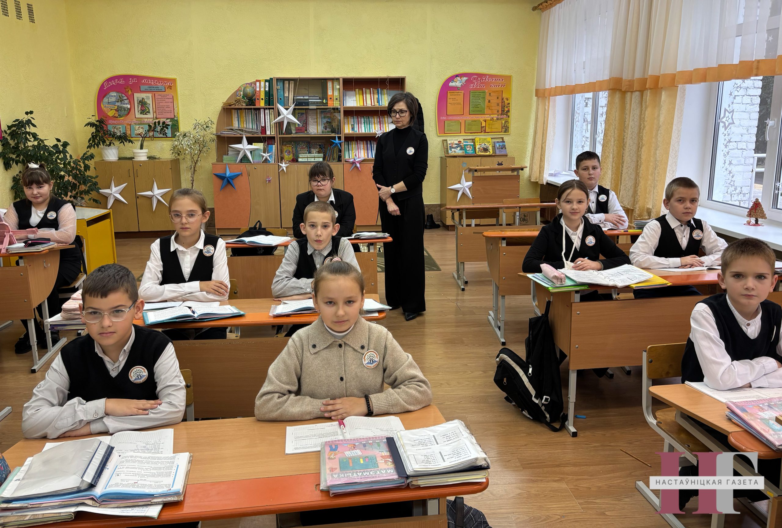 Час ад часу мы заходзім у класы, дзеці ўстаюць з-за парт і шчыра вітаюць нас. Усе кабінеты ўкамплектаваны тэхнікай, абсталяваннем.