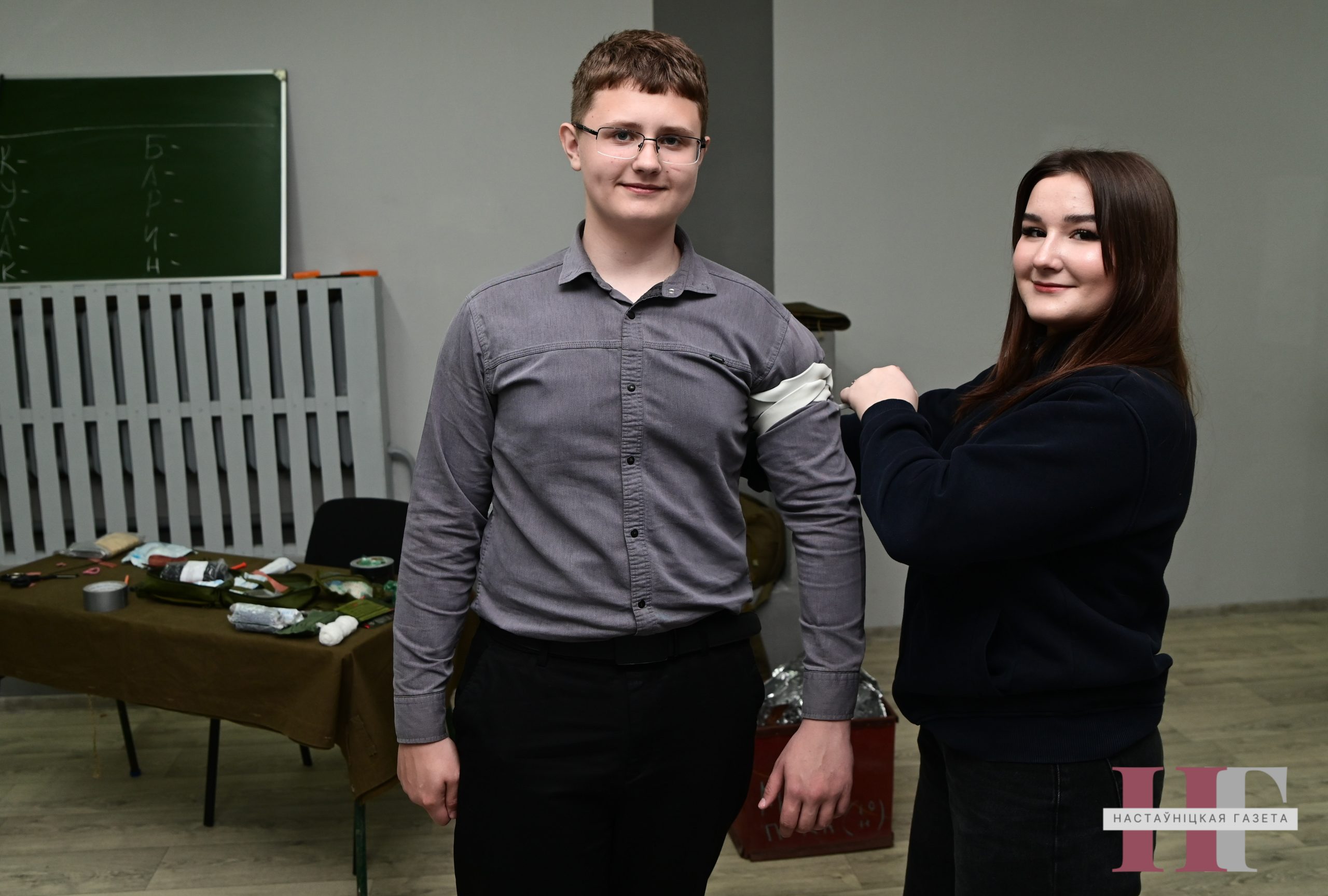 На занятках па тактычнай медыцыне педагог кіраўнік па ваенна-патрыятычным выхаванні Тышкавіцкай сярэдняй школы Мікалай Бондар тлумачыў алгарытм аказання першай дапамогі пры крывацёках, назваў тыповыя памылкі, якія можна пры гэтым зрабіць. Юнакі і дзяўчаты дэманстравалі, як правільна спыніць крывацёк. Мяркуецца, што чалавек быў паранены ў левае перадплечча і ў правую нагу. Вызначыць дакладную лакалізацыю крывацёку ў рэальных баявых умовах складана, паколькі на байцу на­дзета бялізна, форма, бронеахова. Таму жгут накладваецца ў вобласці пахвіны параненай нагі і ў раёне пляча параненай рукі. Абавязкова фіксуецца час, калі гэта было зроблена (жгут накладваецца на адну гадзіну). Для адпрацоўкі навыку маладыя людзі прымянялі спецыяльны жгут-турнікет. Паспець па нарматыве трэба было за 10—12 секунд.