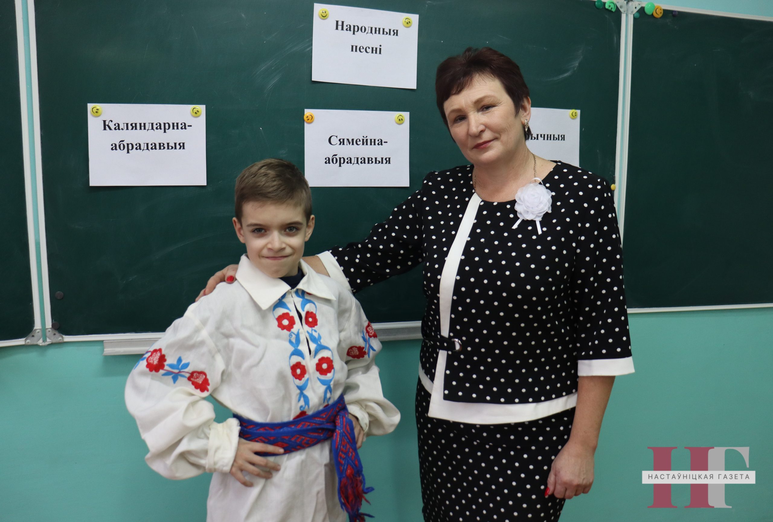 — Тэатральны гурток дзеці пачынаюць наведваць у 5 класе. Першае, чаму вучу іх, — майстэрства дэкламацыі вершаў, уменне падбіраць інтанацыю, адчуваць настрой твора, аналізаваць яго, — гаворыць педагог. — Разыгрываем па ролях невялічкія сюжэты. Навічкі назіраюць за работай больш вопытных тэатралаў, паступова далучаюцца да творчага працэсу. Восенню мы праводзім так званыя вячоркі. Для нашых продкаў гэта было формай баўлення вольнага часу пасля заканчэння палявых работ, дзе адпачынак спалучаўся з працай. На школьных вячорках мы дэманструем звычаі і абрады беларусаў, робім музычныя пастаноўкі, спяваем народныя песні, разыгрываем гумарэскі. Па традыцыі святкуем Каляды — з асноўнымі вобразамі, абходам дамоў, спевамі, танцамі і пастаноўкамі філасофскіх прытчаў. З касцюмамі выручаюць у Столінскім доме культуры, большасць атрыбутаў вырабляем самі, дапамагаюць бацькі вучняў. Вясной адзначаецца Сусветны дзень тэатра, да якога мы рыхтуем сур’ёзны рэпертуар: урыўкі з п’есы Янкі Купалы “Паўлінка”, баладу “Свіцязанка” Адама Міцкевіча, п’есу “Мікітаў лапаць” М.Чарота, “Вечар” А.Дударава, “Баладу аб чатырох заложніках” А.Куляшова, “Трыбунал” А.Макаёнка і іншае. Робім усё прыгожа і з любоўю. І вынікі нас радуюць заўсёды.