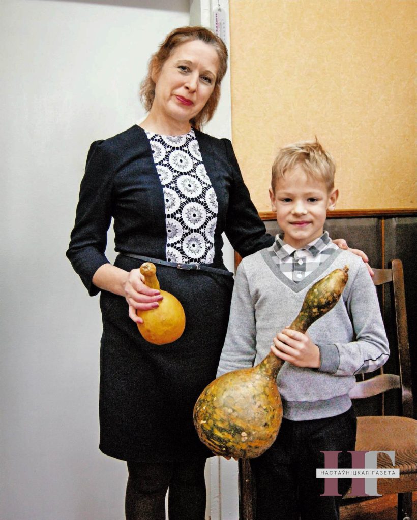 Вось тут Алена Паўлаўна, якая апякае маладую калегу, зрэагавала на мінор і ажывіла размову: загаварыла пра восеньскі Тыдзень гарбуза ў школе. І пра лагенарыю. “Ламінарыя?..” — перапытаў я, упершыню пачуўшы гэтую назву. “Ды не, гэта ж водарасць!..” — усміхнулася біёлаг Настасся. “У нас усе вучні прыносілі гарбузы ў школу са сваіх агародаў, — прадоўжыла намесніца дырэктара па асноўнай дзейнасці Алена Паўлаўна Муха. — І конкурс малюнкаў быў, і конкурс фотаздымкаў з гарбузом, і самаробкі, стравы з іх рабілі. Я думала, што стану пераможцай па гарбузе — вырошчвала ж улетку на сваім агародзе лагенарыю. Ну такі гарбуз экзатычны! А перад летам я дала насенне свайму вучню Цімафею з 2 класа. І вось я прынесла невялічкую сваю лагенарыйку, а ён велізарную! Пытаюся, захапляюся: “А як жа ў цябе такая вырасла?! Я ж так даглядала сваю, а ў параўнанні з тваёй яна малюсенькая”. Ціма мне адказаў: “Я нічога з ёй не рабіў. З бабуляй пасадзілі каля плоту — і далей яна сама”.