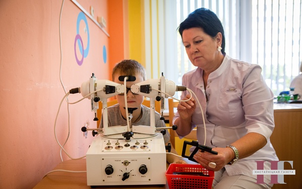 — Праз наш кабінет штодзень праходзіць каля 80 дзяцей, сярод якіх 16 маюць інваліднасць, — расказвае Ірына Міхайлаўна. — Большую частку часу мы займаемся работай па аднаўленні бінакулярнага зроку і павышэнні яго вастрыні. Лячэнне праводзіцца паэтапна. Спачатку прымяняецца плеоптыка — комплекс метадаў, накіраваных на аднаўленне вастрыні зроку. Затым ідзе этап артоптыкі, калі праводзіцца карэкцыя касавокасці і аднаўляецца бінакулярны зрок. Завяршальным этапам становіцца дыплоптыка — трэніроўка па пераадоленні штучна створанай касавокасці.