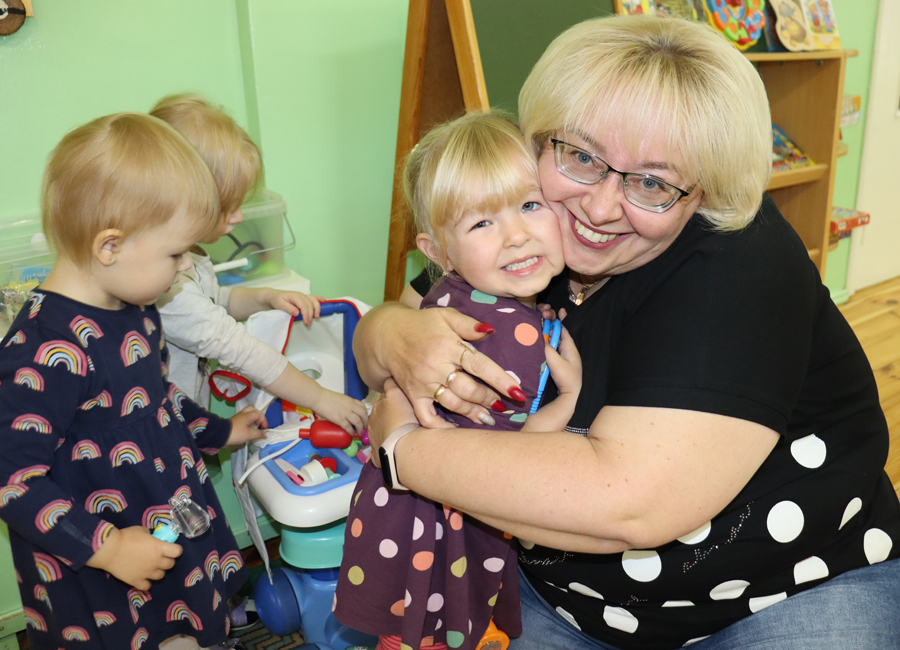 — З напарніцай Надзеяй Мікалаеўнай мы ўвесь час на сувязі, абмяркоўваем кожнае дзіця, — падкрэслівае Людміла Уладзіміраўна. — Калі я сёння пасадзіла на гаршчок малога, які яшчэ не прывучаны да яго, то і напарніцу прашу рабіць тое самае. Радуемся ад душы з калегай, калі ўдаецца чамусьці навучыць дзяцей. Многія пытаюцца: “Як ты спраўляешся?”. Шчыра кажучы, ад работы я не стамляюся. Любоў да дзяцей, што аднойчы зарадзілася ўва мне, нікуды не знікае. З гадамі мяняецца ўспрыманне некаторых момантаў у педагогіцы. Выхаваўшы ўласных дзяцей, маючы ўнукаў, я лепш пачала разумець дзяцей, перажываю за кожнага, як за свайго. Выхаванцы завуць мяне “мая Люда”. Быў момант, калі я расплакалася. Да мяне падышла дзяўчынка і спытала: “Люда, ты плачаш? Давай я табе слёзкі вытру”. Абняла мяне і ўсё як рукой зняло. Спрабавала працаваць са старэйшымі дашкольнікамі, але заўсёды вярталася ў свае любімыя яселькі. Напэўна, быць “ясельніцай” — маё прызванне.