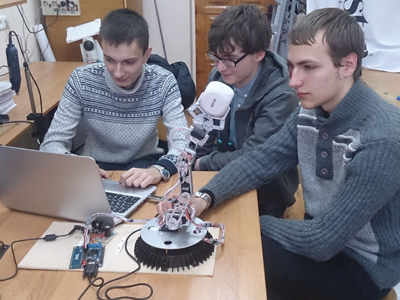— Навукова-даследчая работа ў галіне робататэхнікі вялася супрацоўнікамі кафедры інтэлектуальных інфармацыйных тэхналогій у рамках асобных праектаў (у тым ліку з замежнымі партнёрамі) больш як 10 гадоў, — расказвае кіраўнік лабараторыі дацэнт кафедры інтэлектуальных інфармацыйных тэхналогій БрДТУ Андрэй Пятровіч Дунец. — Для інтэграцыі напрацовак і больш актыўнага ўдзелу студэнтаў і маладых навукоўцаў у навуковай і творчай
