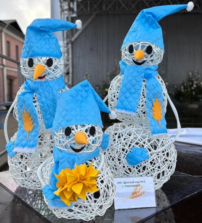 З пачатку снежня радуе ўсіх і зроблены рукамі Анастасіі Валяр’янаўны дэкор каля ўвахода ў дзіцячы сад — снегавікі з ратангу.