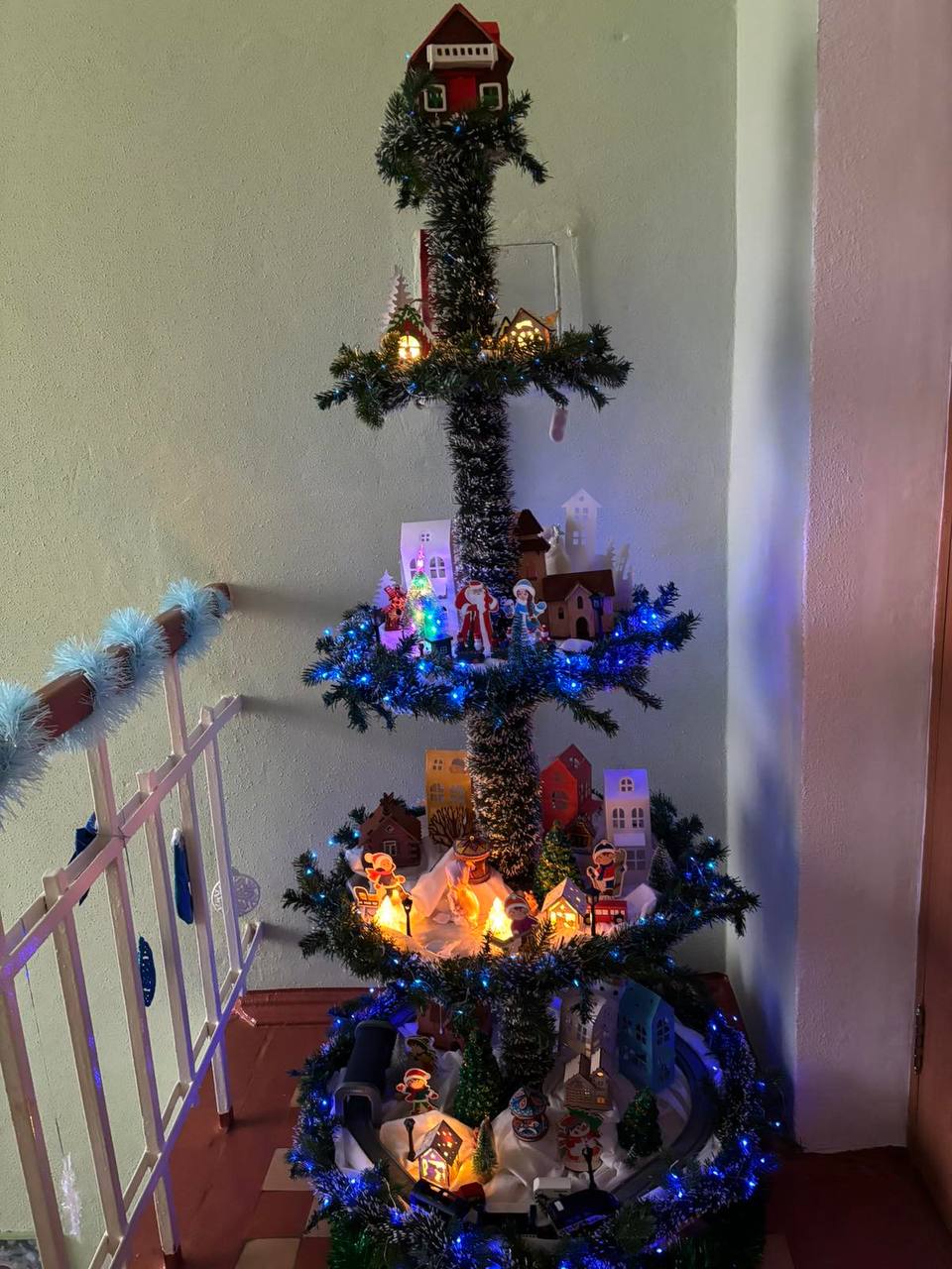 Кожны “паверх” такой ёлачкі аформлены як сцэна гарадскога жыцця, зразумела, у святочнай тэматыцы — з агеньчыкамі і казачнымі персанажамі. Многія элементы створаны рукамі членаў калектыву. Арыгінальны каток з эпаксіднай смалы і фігуркі дзяцей на ім — аўтарства кіраўніка дашкольнай установы.