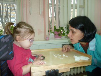 Калі я з мэтай удасканалення вопыту па спецыяльнай адукацыі была ў Германіі, нам падчас адной з сустрэч прапанавалі вялікую праграму па вывучэнні эргатэрапіі — кірунку, які дазваляе падбіраць лячэнне для цяжкіх дзяцей (з 4—5 ступенямі страты здароўя). З чаго неабходна пачынаць? З правільнага пазіцыяніравання дзяцей, асабліва дзяцей з ДЦП. З умення расслабіць іх, надаць іх целу такую позу, пры якой гасяцца тонусы, знікаюць паталагічныя рэакцыі і дзецям становіцца камфортна. Пры гэтым з дапамогай спецыяльных сродкаў — падушак, валікаў, кліноў, штучна створаных цяжкасцей для рук і г.д., — вызваляюцца галава, лёгкія, рукі дзяцей. Яны настройваюцца на станоўчыя зносіны і пазітыўныя эмацыянальныя рэакцыі, на зрокавы кантакт.