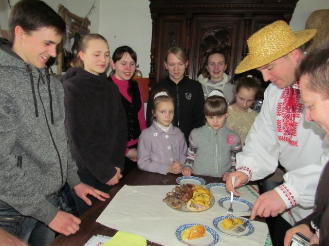 Школьнікі і іх настаўнікі прапанавалі нам паспрабаваць тое, што давала іх продкам сілы жыць, працаваць і гуляць: бабку і галушкі па-зэльвенску, аладкі, вантрабянку, гарбузянку, цыбрыкі, бульбішнікі — усё толькі што з печы. Быў тут і з дзясятак страў, якія ўвойдуць у дапоўненае выданне: халадзец ад дырэктара школы, вяндліна з падземнай вяндлярні настаўніцы фізвыхавання і нават… пячэнне з салам.