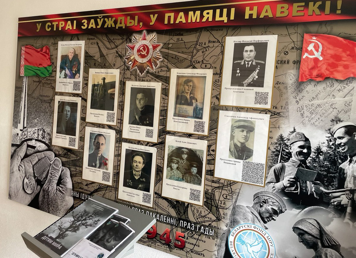 Гаворачы аб праекце “Дзеці міру пра дзяцей вайны”, Алена Мікалаеўна ўдакладняе, што спачатку зрабілі эскіз, які адобрылі ў фондзе і ўручылі грант на ўвасабленне праекта. З красавіка 2024-га пачалі працаваць, найперш збіраць інфармацыю. Задзейнічалі практычна ўсю школу, а ёсць і канкрэтны атрад міратворцаў — вучні 11 “Б” класа.