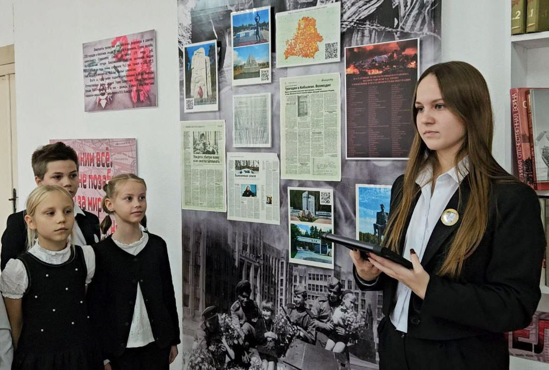 “Самі з гэтым працуем, у тым ліку і са штучным інтэлектам: каб усё было цэльна і глядзелася, — дзеліцца вопытам Алена Козырава. — Ні на каго работу не перакладаем, вучняў актыўна падключаем. Усе макеты распрацаваны ў дадатку Canva (бясплатны анлайн-інструмент для графічнага дызайну). Там у нас ёсць група, куды і запрашаем вучняў: для іх гэта новыя кампетэнцыі. А ідэю праекта “Дзеці міру пра дзяцей вайны” падала Аляксандра Гурбач, малады спецыяліст, настаўніца біялогіі. Яна крэатыўны чалавек, і мы з ёй прадумвалі, як ідэю ўвасобіць”.